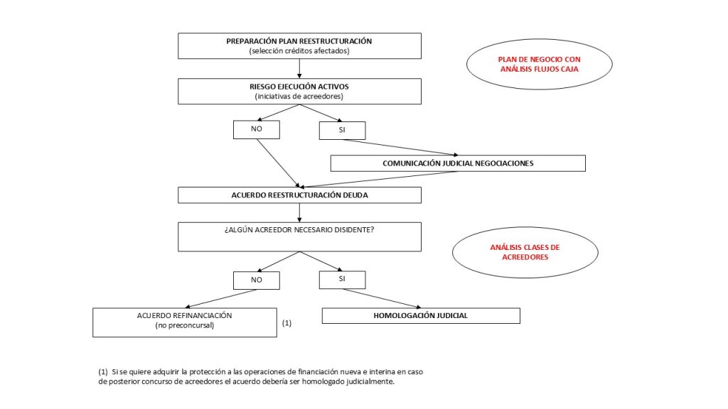 Esquema proceso reestructuración deuda en entorno preconcursal